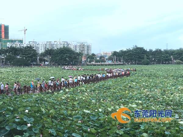 - 2017年7月7日东莞阳光网讯第十四届东莞桥头荷花节正式启动后的首个周末,炎热的天气挡不住游客赏荷的热情,港澳游客以及市内外不少游客纷纷趁着周末假期,结伴来到桥头莲湖赏荷游玩,以致莲湖及周边人气爆棚。周末的桥头莲湖风景区,映日荷花别样红的美景吸引了万千游客,他们分布在莲湖栈道、荷花展览区等各个角落,与形态各异的荷花合影留念,阳光、游人、荷花相映成趣,整个莲湖及周边人气爆棚、热闹非凡。东城游客:“感觉这边的景安排的非...