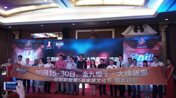 - 2017年7月6日\u00A0\u00A0中国陶瓷网讯9月29日下午,“冠军联盟金九银十?大牌盛惠——第5届家居文化节启动仪式暨冠军联盟战略合作项目签约新闻发布会”在深圳凯宾斯基大酒店隆重召开。在本次发布会上,冠军联盟宣布,将在10月份,联合东鹏瓷砖、大自然地板、慕思寝具、索菲亚衣柜、皇派门窗、乐视等品牌,盛大推出“冠军联盟金九银十?大牌盛惠——第5届家居文化节”活动,为全国消费者提供实实在在的购物优惠。冠军联盟1...
