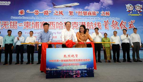 - 2017年7月4日助力一带一路,加强互联互通。2017年6月25日下午5点35分,ZA4749航班从无锡硕放机场顺利起飞,4个多小时后成功降落在柬埔寨西哈努克国际机场,标志着无锡首条直飞柬埔寨西哈努克省的国际航线――无锡至西港正式开通。江苏省委书记、省人大常委会主任李强给首航发来贺信,贺信中说,在“一带一路”框架下加强基础设施互联互通合作,建设好西港特区,是中柬两国领导人达成的共识。希望无锡市委、市政府和有关方面,...