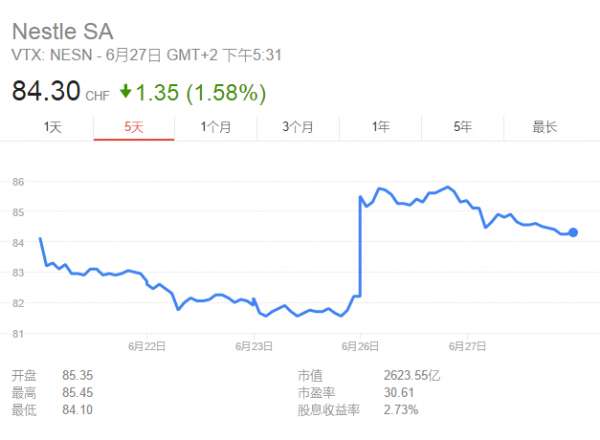 - 2017年6月30日金融界美股讯:在维权投资者DanLoeb披露持有雀巢公司股份、旨在重组该全球最大食品公司的几天后,雀巢宣布了回购200亿瑞士法郎(210亿美元)股票的计划,并表示正在寻求收购机会。雀巢周二发布声明称,在启动其10年来最大回购行动的同时,还将投资咖啡、宠物护理、婴儿食品和瓶装水,并寻求消费者保健方面的机会。雀巢总部位于瑞士的Vevey,旗下产品包括嘉宝婴儿食品和DiGiorno披萨。Loeb的对冲基...