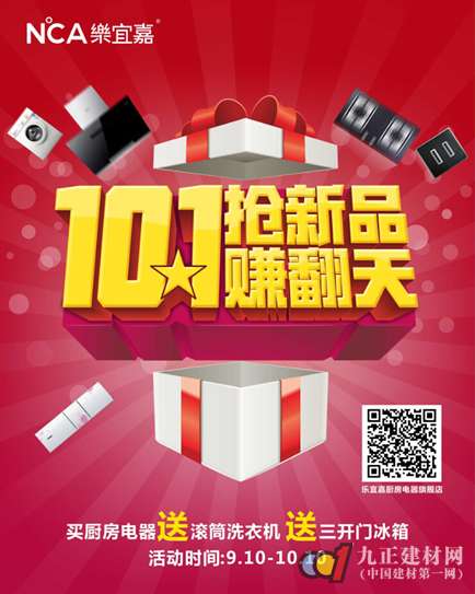 - 2017年6月29日9月18日—10月10日,乐宜嘉电器全国各大专卖店喜迎中秋与国庆之际,特举办“抢新品,10.1赚翻天”促销活动,全场超低折扣钜惠新老顾客,更有“四重好礼”相送,邀你共享智慧健康厨房。本次活动,乐宜嘉电器主推劲爆新品,特惠套餐组合,为你打造智慧、健康的厨房生活体验!同时,为感恩回馈广大消费者,还推出四重惊喜:1、凡购买指定电器套餐就送滚筒洗衣机,送三开门冰箱;2、扫描二维码,成功下单预定新品灶具即可...