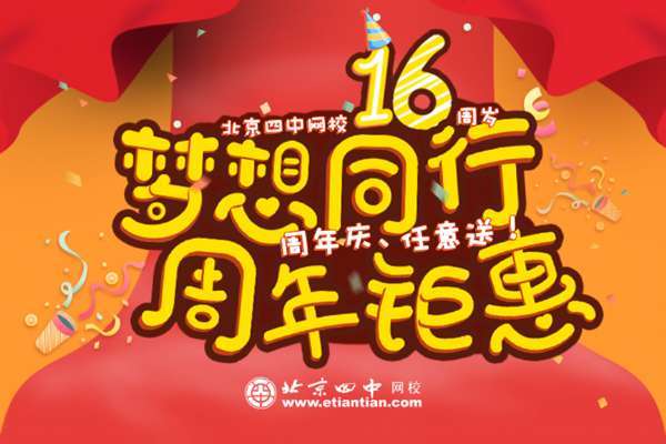 - 2017年6月28日2017年4月28日,是北京四中网校成立16周年的纪念日。从2001年4月28日至今,网校已然成长为一位16岁的“花季少年”了。16年来,北京四中网校始终不忘“让更多的孩子得到更好教育”的宗旨,在网校总部的领导、全国各地分校的同仁、各地合作学校师生的共同努力下,历经风雨与考验,我们脚踏实地、一步一个脚印的走到了今天。在互联网大潮下,在各级领导的关怀下、在社会各界及学生与家长的鼓励下,北京四中网校在...
