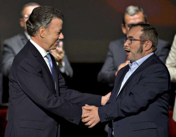 - 2017年6月27日(原标题:哥伦比亚最大反政府武装正式“缴枪”)新华社波哥大6月26日电联合国哥伦比亚政治特派团26日发表声明说,哥伦比亚最大反政府武装“哥伦比亚革命武装力量”(哥武)已经完成上缴武器的第三阶段,正式解除武装。2016年11月24日,在哥伦比亚波哥大,哥伦比亚总统桑托斯(左)和“哥伦比亚革命武装力量”(简称“哥武”)领导人罗德里格·隆多尼奥·埃切韦里在新和平协议签署仪式上握手。(新华社/法新)特派团...