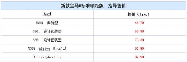 - 2017年6月27日进口宝马5系车型上市推出了5款车型,报价及图片下文提供欣赏,宝马5系535i豪华设计套装版车型报价70.3万,535i豪华设计套装版车型的性价比怎么样?动力表现怎么样?这款宝马进口5系从正式上市开始,就不断的赢取消费者的喜欢,并且价格方面也是45.70-87.90万元,至于配置方面还是非常的人性化设计,所以至于这款细节还请看下文。盛夏送豪礼,购车享优惠更有机会赢取iphone7意向车型2015款5...
