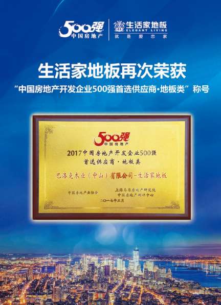 - 2017年6月22日近日,由中国房地产业协会、中国房地产测评中心联合主办的“2017中国房地产500强首选供应商、服务商品牌”测评成果发布会在北京隆重举行。生活家地板斩获“2017中国房地产开发企业500强首选供应商?地板类”这一大奖,其过硬的产品品质和服务能力获得了中国房地产行业权威认可。据悉,“中国房地产开发企业500强”测评不仅是为房地产企业提供精细化首选供应商研究报告,更是旨在表彰那些在年度工程市场获得卓越口...