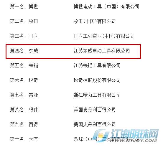 - 2017年6月21日江海明珠网讯近日,由品牌排行网主办的“2017年度中国电动工具十大品牌评选”结果出炉,记者梳理发现,江苏东成电动工具有限公司荣登“2017年度中国电动工具十大品牌”第4名。据了解,此次评选,主办方征集数万网友投票、点评,经过多轮审核精选出行业品质出众、人气最旺的十大品牌。活动创办以来反响热烈,不仅吸引了国内近一半的品牌和经销商的参与,同时也被新浪、网易、新华、中国、搜狐等70多家知名网媒高度关注,...