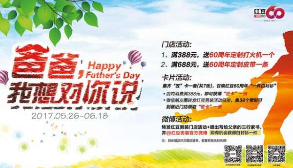 - 2017年6月18日\u00A0“时光时光慢些吧不要再让你变老了我愿用我一切换你岁月长留一生要强的爸爸我能为你做些什么微不足道的关心收下吧谢谢你做的一切双手撑起我们的家……”一曲筷子兄弟的《父亲》,引发了无数儿女的情感共鸣。临近父亲节,红豆男装用三行情书书写埋藏心底的感恩,并向所有为家庭辛苦工作的父亲们致以诚挚的节日问候。三行家书,书写父爱故事“三行情书”用简练精致的三行诗表达告白、祝福、牵挂和感恩,以其新颖的形式迅...