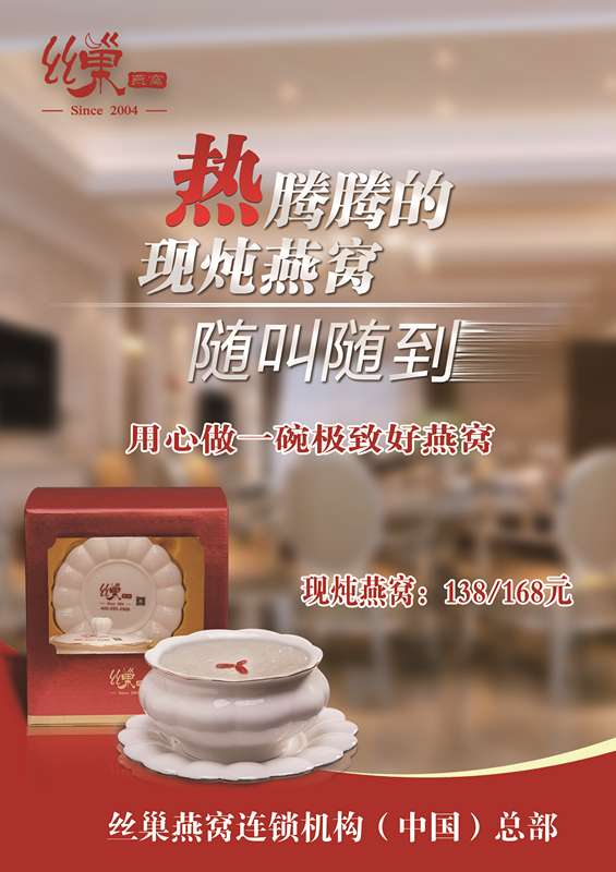 - 2017年6月18日创业第二春?加盟丝巢现炖燕窝月入过万不是梦原标题:创业第二春?加盟丝巢现炖燕窝月入过万不是梦创业第二春?加盟丝巢现炖燕窝月入过万不是梦。健康养生自古就是大家最为关注的话题,由此衍生的健康产业,目前已成为21世纪朝阳产业之一。广阔的市场发展前景,一直被国内外投资者所推崇。“药物保健品、运动、以及纯天然滋补品”三足鼎立,共同构筑了健康产业。随着大家健康意识的增强,愈加重视自身的保养,除了依靠医疗、科技...