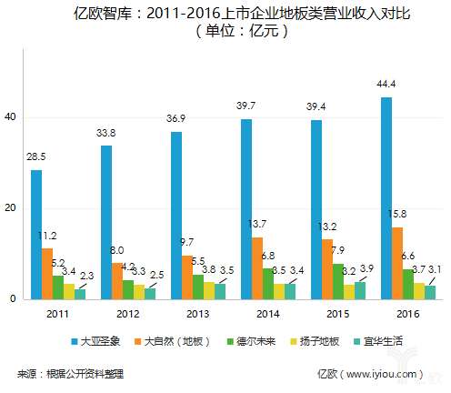 - 2017年6月17日泛家居圈,关注中国家居建材业第一新媒体据《中国地板行业市场调研及投资潜力研究报告》预测,到2021年,我国木地板行业销售收入将接近1300亿元。与此同时,行业内至少有上千个品牌在同台竞争,可以说木地板行业品牌集中度很低。在这样的行业背景下,有两个品牌知名度最高,一个是圣象,一个是大自然。据大亚圣象2016年报,2016年圣象集团营收达46亿,其中木地板实现营业收入44.44亿元。据亿欧智库的统计数...