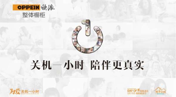 - 2017年6月17日广告主:欧派橱柜所获奖项:创意传播类银奖针对家庭关系亚健康人群,在国际家庭日期间,欧派家居“爱家计划”公益项目推出“关机一小时”的爱家话题,通过一系列行动和“关机一小时,陪伴更真实”的多层次内容传播,唤起人们对沉迷手机影响家庭健康沟通的关注,同时强化欧派与“关机一小时”和“国际家庭日”的品牌关联,让更多人从情感上回归家庭,传递欧派“有家有爱”的品牌主张。通过公益2.0的形式,对品牌价值进行另一种诠...