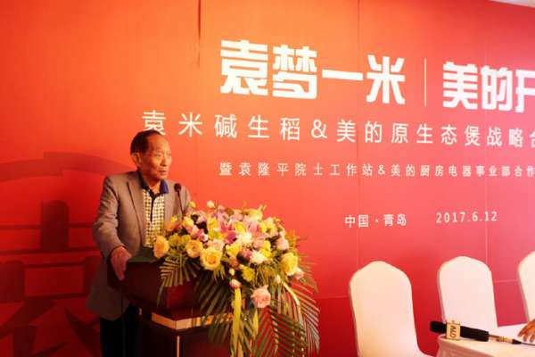 - 2017年6月13日袁隆平院士和美的集团及袁策生物工作人员合影留念\u00A0\u00A0青岛新闻网6月13日讯(记者朱颖)12日下午,87岁的袁隆平院士亲自来青和美的集团签署科研合作协议。合作将从耐盐碱水稻“袁米”与美的高端品牌电饭煲“原生态煲”开始,并在未来延展到一系列的品牌、销售、研发、数据等多方面合作。这也是87岁的袁隆平院士首次与家电类企业进行科研合作。\u00A0\u00A0\u00A0\u00A0自从袁...