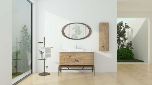 - 2017年6月12日光影浮动,犹如水珠般滴落的镜子,在柜面上泛起片片涟漪,\u00A0晨间里跌落的叶子,在涟漪中荡漾。置身其中,犹如徜徉于湖泊之上,温润的阳光洒满全身。这是一种回归自然的渴望和向往。\u00A0源于自然:天然实木(胡桃木+白橡),自然温润莹润水滴:胡桃木框镶嵌无铜镜面,呈水滴造型垂叶轻漾:原木手工雕刻成型,点缀灵动生机艺术盆与台面:超薄一体成型艺术盆,搭配天然大理石台面柔柔涟漪:50mm厚度的原木CN...