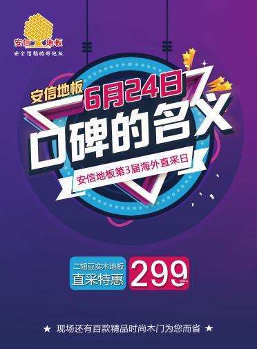 - 2017年6月10日国内高端实木地板领导品牌“安信地板”海外直采日活动已成功举办两届之后,6月24日,安信地板第三届海外直采日再次拉开帷幕。据悉,本次活动中,安信地板将继续秉承“用匠心挖掘和运用木材的天然优势持续改善人类的居住环境”的企业使命,甄选全球5大基地珍稀实木地板,工厂直销价,安信地板用卓越的品质,真诚的价格回馈用户的口碑。口碑的名义:甄选精致好地板本次直采日活动现场,安信地板将展示出百余款精致地板。据了解,...