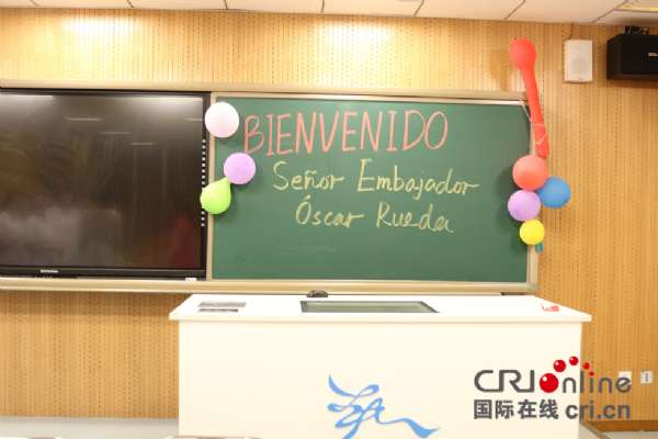 - 2017年6月7日国际在线报道(中国国际广播电台记者杨喆):5月31日,哥伦比亚大使奥斯卡?鲁埃达应邀来到北京古城中学,为古城中学西班牙语班的学生带来了一场生动的哥伦比亚文化盛宴。为了迎接大使的到来,同学们用气球和哥伦比亚国旗布置会场,身着哥伦比亚巴兰基亚地区的传统服饰,挥舞起手中的哥伦比亚国旗对大使表示热烈欢迎。活动中,大使为同学们介绍了哥伦比亚的地理位置、国旗、国徽等国家概况,还为同学们展示了哥伦比亚特色民族服...