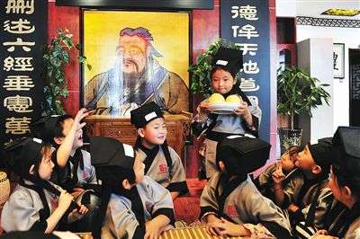 - 2017年6月3日环渤海新闻网消息(焦宇)4月17日,唐山首家童学馆在建设路上的唐山妇女儿童活动中心开馆。该馆提倡以创新之法向3至8岁儿童传承中国传统文化。开馆当天,20名幼儿在4名女“先生”的身教下,着汉服、拜孔子、诵国韵、习礼仪,分别完成了“师正衣冠”“集体拜孔”“平步青云”“朱砂开智”“开笔写字”“分发竹简”“分食聪明蛋”和“启蒙教育”八个步骤的开蒙礼。据悉,他们将在每个周末接受中华传统文化的熏陶。记者在现场...