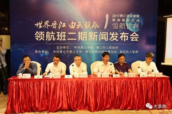 - 2017年5月31日5月21日上午,晋江市企业家素质提升行动“领航计划”暨2017世界晋江企业家领航班新闻发布会在晋江市委党校宾馆召开。会上,晋江市常委、组织部部长吴忠刘表示,在过去一年的落地实施过程中,晋江市领航计划取得了可喜成绩,并对各单位的积极配合与勤恳付出给予了充分肯定。晋江市常委、组织部部长吴忠刘(站立者)“在晋江产业转型升级的过程中,人才是第一要素,领航计划正是通过改变、提升晋江的青年企业家素质来引领城市...