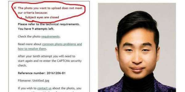 - 2017年5月31日李上傳照片申請新護照,竟遭臉部辨識軟體判讀為閉著眼,不合規定退件。(圖/RichardLeeFacebook)科技有種族歧視?一名台裔紐西蘭男子申請更新護照,上傳睜著眼的照片,竟遭臉部辨識軟體判讀為閉著眼,因不合標凖被拒辦。據外媒報導,理察.李(RichardLee)是一位在澳大利亞墨爾本讀書的22歲工程系學生,他在台灣出生,在紐西蘭長大。日前,李在紐西蘭申請新護照,上傳的照片竟遭軟體判讀為「不合...