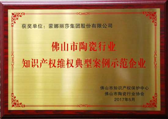- 2017年5月26日\u00A02017年5月16日下午,由佛山市知识产权保护中心、佛山市陶瓷行业协会、广东方图律师事务所、中国陶瓷城举办佛山市陶瓷行业知识产权维权大数据报告发布会上,蒙娜丽莎集团股份有限公司凭借多年来品牌保护经验和维权实力被评为佛山市陶瓷行业知识产权维权典型案例示范企业。“蒙娜丽莎”作为中国驰名商标、广东省著名商标,随着品牌知名度不断提升,品牌被模仿情况增多,侵权形式也是五花八门。作为佛山市商标协会...