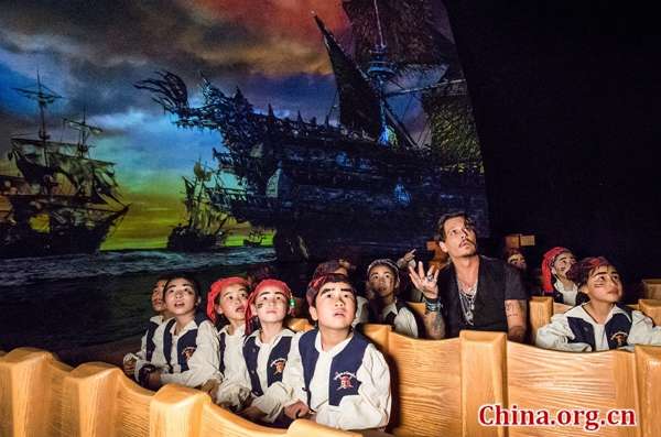 - 2017年5月23日凤凰网娱乐讯近日,在《加勒比海盗5:死无对证》全球首映礼当天发生了一幕趣事,约翰尼·德普在上海迪士尼度假区宝藏湾被一群小海盗掳走了,这些“蓄谋已久”的小海盗们究竟为何要会一会头号通缉海盗杰克船长?原来,小海盗们是想带着德普一起搭上“加勒比海盗-沉落宝藏之战”,一起探险寻宝。原本不羁的杰克船长和小海盗们在一起也流露出天真呆萌的一面。德普与小海盗坐海盗船《加勒比海盗》是全球具有影响力的电影系列之一,此...