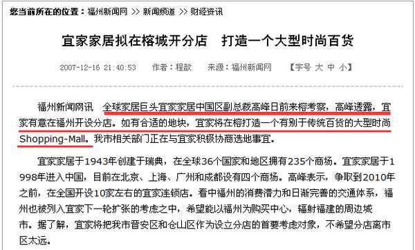 - 2017年5月22日今天,全球最大的家具与家庭用品零售公司之一、全球100个最有价值品牌之一——宜家家居公司在海交会现场与晋安区签约。幸福似乎来得太突然!但真正算来,“宜家要来福州”的消息传得可有点年头啦,并不是有相关动向传出!福州与宜家的爱情长跑福州新闻网报道称,全球家居巨头宜家家居中国区副总裁高峰曾到福州考察时,明确表态有意在福州开设分店,并且要将福州宜家打造一个有别于传统百货的大型时尚Shopping-Mall...