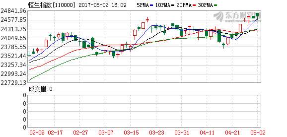 - 2017年5月22日今日港股正式进入“五穷”月。恒指高开0.64%,再刷20个月新高。后高开低走。截止收盘涨0.33%。5月2日消息,上周恒指涨2.09%,今日港股正式进入“五穷”月。美国三大股指涨跌不一,纳指再创历史新高;ADR港股比例指数报24745,较上周五恒指收市升129点或0.53%。今日早盘,恒指高开0.64%,报24773.8点,再刷20个月新高。盘中涨势反复,高开低走。午后恒指几度倒跌,最低见2457...