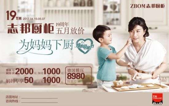 - 2017年5月15日一年一度的母亲节就要到了,为了能让妈妈感受到身为母亲被儿女温暖、呵护的小确幸,相信你已经在筹划怎么过节了。准备给妈妈送一份礼物,或者出门吃一顿感恩大餐?这些方式不觉的太LOW了吗?母亲节怎么过有意义,这一次,更懂生活的志邦厨柜为你推荐4种最IN过法。曾经十指不沾阳春水的妈妈,如今天天围着厨房转,为着这个家她终日忙碌着,再也难有时间和心情打扮自己。何不在母亲节这一天,帮妈妈打扮得漂漂亮亮,挽着她的手...