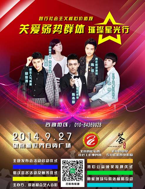 - 2017年5月15日\u00A0\u00A0\u00A0\u00A09月27日,由北京荟草堂祛痘望京旗舰店共同主办的公益活动“关注弱势群体·璀璨关爱行”在望京新世界百货广场顺利举行。\u00A0\u00A0\u00A0\u00A0活动分为“颁奖授牌”、“倡议签名”、“捐赠书籍”、“现场互动”四个环节,并邀请到艺人陈希郡、蔡俊涛、王紫菲、陈佳、亦勋作为嘉宾出席该活动。\u00A0\u00A0\u00A0\u00A0在“...