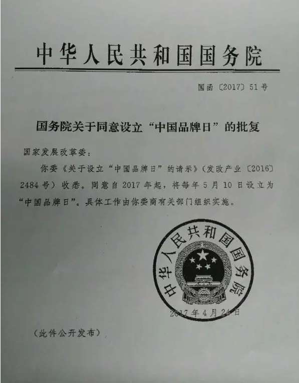 - 2017年5月15日5月2日,国务院办公厅批复同意设立“中国品牌日”。批复称,同意自2017年起,将每年5月10日设立为“中国品牌日”,具体工作由国家发改委等有关部门组织实施。品牌日的设立,对于所有的中国品牌而言,将具有非同凡响、甚至是划时代的意义。新政出台,自主品牌利好“中国品牌日”的设立,首先体现国家对中国品牌成长的重视,同时也是一件顺理成章的事。“中国品牌日”将鼓励中国品牌积极自主创新、提升产品价值,有利于树立...