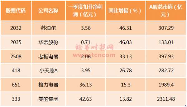 - 2017年5月13日万绿丛中一点红。在沪深两市一片哀鸿遍野之中,家电板块6只个股近期却创出了历史新高。5月12日,美的集团、苏泊尔盘中创出历史新高;4月26日,小天鹅A、格力电器盘中创出历史新高;4月20日,老板电器、华帝股份盘中创出历史新高。值得注意的是,这6只深市创新高个股所在的白色家电板块,4月以来整体下跌4.94%,跑赢同期深成指6.14%的跌幅。那么,是什么原因导致了上述6只个股表现如此抢眼呢?先来看这6股...