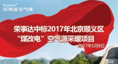 - 2017年5月11日北京顺义区2017年“煤改电”空气源热泵采暖项目今日(5月8日)开标,荣事达空气能成功中标,成为北京顺义区政府采暖项目指定采购商!据悉,2017年顺义区“煤改电”采暖项目采购量达19亿元,体量巨大,审查严格,完备齐整的企业综合实力、深厚专业的产品研发能力以及完善优质的售后服务水准铸就了此次荣事达空气能的强势夺标。近些年,荣事达空气能载誉连连,多次获得各单位机构评选的年度十大品牌,参与编制起草空气能...