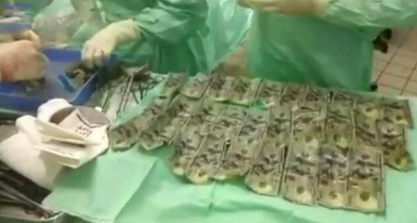 - 2017年5月10日【环球网综合报道】据英国《每日邮报》5月4日报道,哥伦比亚一名女子省吃俭用存了一笔钱,本想与丈夫一道去旅行,没想到丈夫居然出轨。她与丈夫大吵一架后还是气不过,遂生吞了家庭旅行资金――70张纸币,共计7000美元(约合人民币4.8万元)。第二天,女子感觉腹痛,前往医院,但未对医生说实情。B超显示,女子腹中有约3厘米长的物体,医生一开始以为是毒品,手术后才发现竟是纸币。最后,医生从女子的胃和肠道中取出...