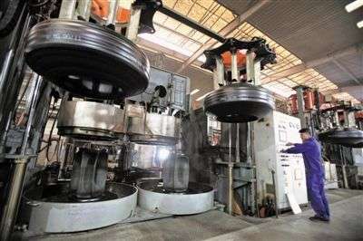 - 2017年5月9日5月5日,神州轮胎有限公司车间,技术工人正在操作现代化的生产设备。记者王猛摄被裁断的橡胶带“咋咋”作响,制成轮胎半成品后被组装成型,由机械手臂运到一个“大锅”里进行硫化。一个小时后,轮胎就像蒸馒头一样“出锅”了。5月5日下午,总长1公里的神州轮胎有限公司高度自动化轮胎生产线贯穿4个车间,一道道生产工序在自动机械作业下环环紧扣。面对40多名参加全区宣传文化系统“深化走转改见证新发展”观摩采访活动的中...