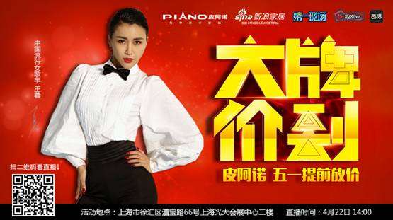 - 2017年5月8日王蓉来上海啦,4月22日相约皮阿诺橱柜送惊喜分享到:微信朋友网腾讯微博新浪微博QQ空间QQ好友人人网更多摘要:免费入场来接驾,好玩多样的互动娱乐项目,携手皮阿诺橱柜给上海市民和粉丝们送来N重让利和惊喜:进场就有好礼相送、幸运砸金蛋、幸运嘉年抽奖、总裁亲临现场放价等。给参与者们带来惊喜和欢乐。皮阿诺橱柜、衣柜、家居定制五一放价、明星分享高品质……\u00A0她是流行乐坛光芒耀眼的明星,她的歌风格多变...