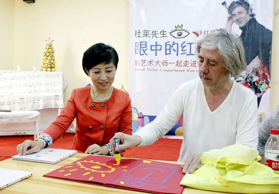 - 2017年5月7日\u00A0\u00A0\u00A0\u00A012月17日,欧洲童书大师埃尔维·杜莱走进义乌早教领导品牌红黄蓝亲子园,和老师、孩子们一起讲故事,玩儿色彩。义乌早教机构红黄蓝教育机构创始人、总裁史燕来女士,副总裁韩霞、蔺玉华女士也都亲临现场,一同感受色彩的魔力。为了欢迎杜莱先生的到来,义乌早教中心副总裁韩霞女士亲手送上了由红黄蓝和膳魔师联合出品的亲子套杯,“一杯子,一辈子”寓意着彼此的友谊地久天长...