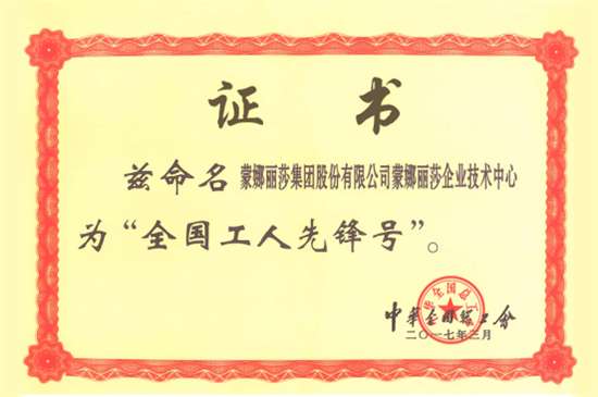 - 2017年5月3日在2017年五一国际劳动节来临之际,蒙娜丽莎集团企业技术中心获得由中华全国总工会授予的“全国工人先锋号”称号。“全国工人先锋号”是中华全国总工会制定下发的以“创一流工作、一流服务、一流业绩、一流团队”为活动内容的荣誉称号。蒙娜丽莎企业技术中心在层层选拔中依靠强大的技术实力和丰硕的科研成果,一路过关斩将,最终获得中华全国总工会授予的“全国工人先锋号”称号。“工人先锋号”是这样炼成的?蒙娜丽莎企业技术...