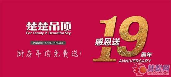 - 2017年4月25日\u00A0\u00A0\u00A0\u00A04月7日――4月23日,为庆祝楚楚吊顶19周年,千店联动,每天送吊顶、送现金、送礼物!根本停不下来!\u00A0\u00A0\u00A0\u00A0既然是周年庆大礼,一定要用事实说话,才能让你的心里美美哒!废话不多说,妥妥上干货!\u00A0\u00A0\u00A0\u00A0一、吊顶免费送\u00A0\u00A0\u00A0\u00A0客厅顶、厨卫...