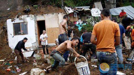 - 2017年4月25日天气网讯\u00A0哥伦比亚由于暴雨引发山体滑坡,目前死亡人数已经达到了16人,还有6人失踪。哥伦比亚近期降雨量超出正常水平,月初西南部普图马约省莫科阿市泥石流灾害造成314人死亡。此前据报14人死亡。据报道,市政风险管理委员会决定在马尼萨莱斯宣布自然灾难状态和“红色”级别警报。目前,至少有25个市区遭受滑坡灾害,75间房屋被毁,400个家庭被疏散。哥伦比亚总统桑托斯抵达马尼萨莱斯,以便现场指挥救...