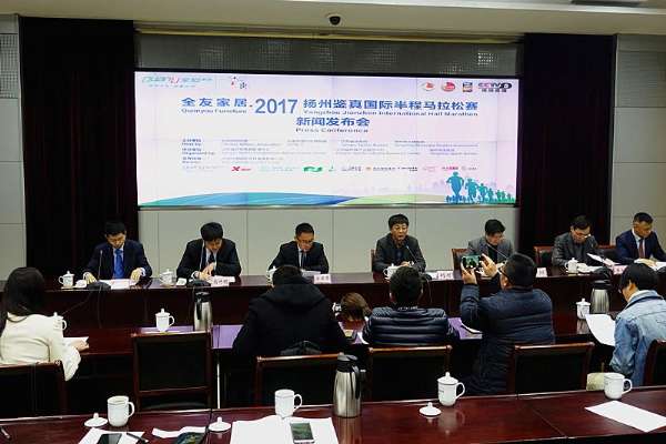 - 2017年4月24日3月27日,全友家居?2017扬州鉴真国际半程马拉松赛新闻发布会在扬州市政府一楼会议室举行。省体育局副局长刘彤,市政府副市长余珽,省竞赛管理中心主任陈小平,市委副秘书长、市体育局局长佘俊臣,北京时博国际体育赛事有限公司总经理张震鹏,全友家私副总尚汁明,北京新能源汽车营销有限公司副总经理陆皓等领导和嘉宾以及国内各主流媒体的记者参加了会议。会议由市政府副秘书长李林主持。市委副秘书长、市体育局局长佘俊臣...