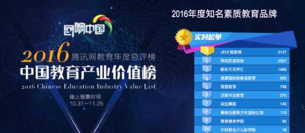 - 2017年4月24日(原标题:JEI才能教育高居2016腾讯网中国教育产业价值榜榜首)10月31日―11月25日,腾讯网“回响中国“教育年度总评榜投票工作正在盛大进行中,源自韩国的JEI才能教育不仅成功入围2016腾讯网教育年度总评榜,并且高居“2016年度知名素质教育品牌榜”的榜首。据了解,腾讯网“回响中国”教育年度总评榜自2007年创办以来,至今已是第10届。在每年的教育盛典,腾讯教育凭借自身强大的影响力,邀请教...