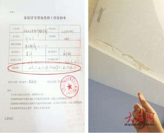 - 2017年4月23日合同中约定的质保期限(左)墙面出现的大面积裂痕(右)。东北网3月17日讯为了避免豆腐渣装修,赵先生没有选择无资质装修队,而是找了有门店的正规装饰公司。然而,所谓正规装饰公司的“专业”装修,还没到两年时间,墙面已面目全非。装修公司保修两年的承诺虽白纸黑字地写在合同上,但装饰公司却不知去向,房主四处奔波却无结果。装修未满两年墙面漆开裂起皮大庆乘风新城居民赵先生于2015年5月进行了一次装修,装修前他特...