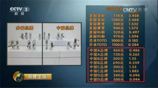 - 2017年4月21日央视二套在近期播出的「消费主张」,再次刷新了消费者对中外品牌水龙头质量认知的「想当然」。在这期《你家的水龙头还好吗?》的专题节目中的对比测评表明:在原材料标准、铅析出量、有机物析出量等测评中,中国品牌产品对比洋水龙头,在价格更经济的前提下,均为占优。在水龙头市场,精品国货的胜出并非偶然。近几年,在质检总局、行业协会引领下,恒洁等卫浴领军品牌正在实现从智能坐便器到健康水龙头,整体品质上的全面赶超。早...