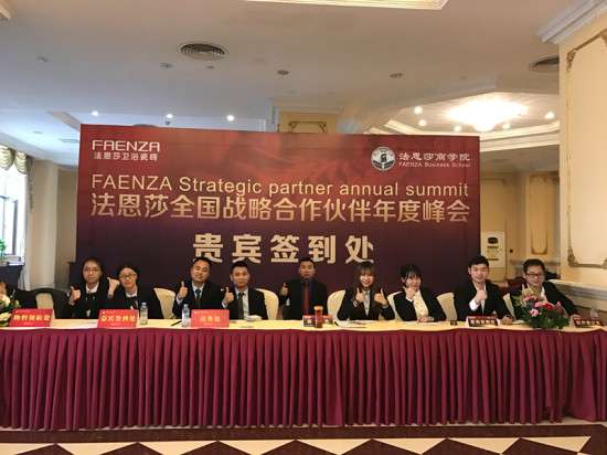 - 2017年4月10日法恩莎卫浴第16届战略合作伙伴年度峰会在高明凤凰酒店圆满落幕这一年法恩莎卫浴逆市而上再创佳绩这一天全体法恩莎家人汇聚一堂承载着全体法恩莎人的血汗和付出在这里绽放无论是峰会的精彩瞬间还是感人的狂欢之夜无疑都成为所有同仁心中抹去不了的涟漪精彩之后让我们回顾现场更多不为人知的瞬间▲年会前,法恩莎卫浴市场部、销售部、物流部等多个部门的同事都在加班加点的筹备。图为工作人员在接待处整齐列队,连小编都不得不为他...