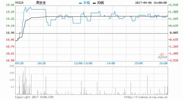 - 2017年4月6日热点栏目资金流向千股千评个股诊断最新评级模拟交易客户端新浪财经App:直播上线博主一对一指导新浪港股APP:实时行情独家内参周生生(00116)现价上升1.69%,报19.3元,盘中高见19.46元创两年高位;成交约41万股,涉资779万元。野村发表研究报告表示,看好中港珠宝零售商的前景,主要基于8大因素包括:内地来港的旅客人数改善、香港租金水平持续下滑、内地珠宝消费增长潜力庞大、内地宝石产品的同...