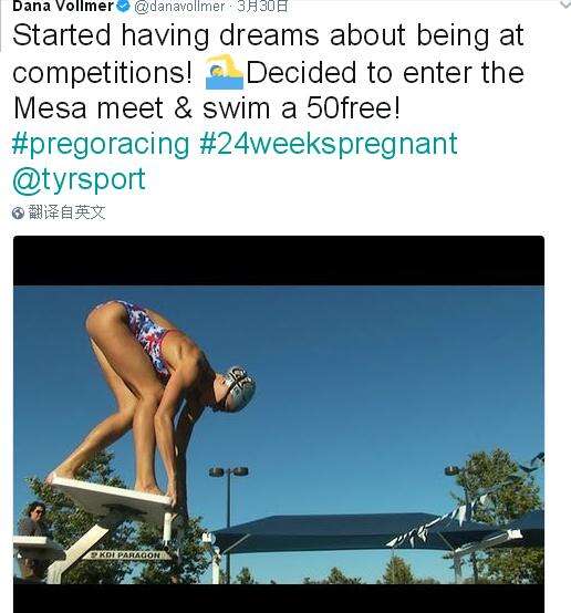 - 2017年4月6日沃尔默在推特上宣布了这一消息孕妇参加全国型体育大赛,如果是刚怀孕,可能还行。但如果怀孕半年呢,是不是有些找事?但偏有这样爱找事的女豪杰,她就是女子蝶泳奥运冠军达娜-沃尔默。她在3月30日的个人推特上称,“我这就开始为梦想而战,决定参加美国职业系列赛梅萨站的女子50米自由泳。”这不是愚人节玩笑,算上时差,沃尔默表态的时间,我们这里看到的也就是3月31日,都没到4月1日。而后来的新闻也证实了她的说法。...
