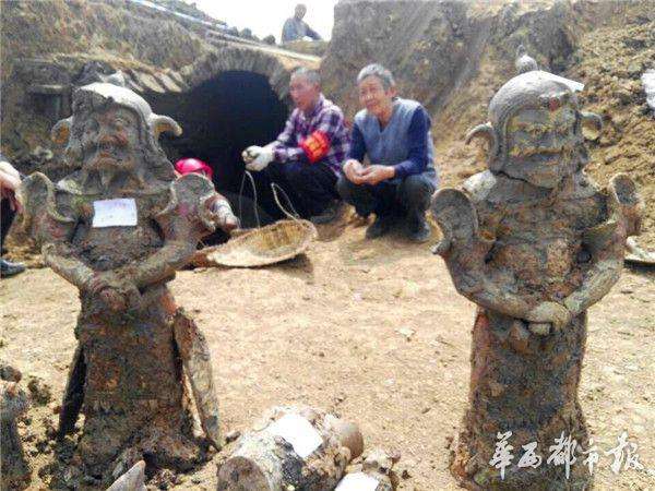 - 2017年4月5日华西都市报-封面新闻讯(记者唐金龙摄影报道)3月30日中午1点过,随着两个陶武士佣的出土,广汉西外乡建筑工地宋女墓抢救性考古发掘工作器物发掘暂告段落,紧接着广汉文管所将对古墓周边作进一步查探,看是否还有古墓的存在。据广汉市文管所副所长刘军介绍,墓主人是一名女性,出土器物丰富,在当时生活比较富足,算得上有钱人。刘军说,出土器物40余件,有陶楼房、人首蛇身佣、武士佣、文吏佣、银钗、铜镜、陶床、陶鸡、陶...