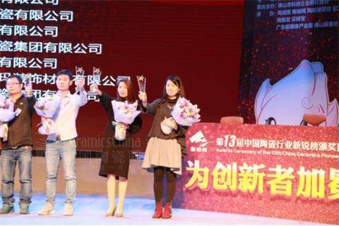 - 2017年4月1日\u00A0\u00A0中国陶瓷网讯3月28日,第十三届中国建陶行业新锐榜颁奖典礼在佛山隆重举行。在这场被业内公认为“奥斯卡”的年度品牌角逐当中,欧神诺陶瓷再次荣膺“年度风云企业”大奖。欧神诺市场部经理章艾(右一)代表公司领奖\u00A0\u00A0在刚过去的2016年中,欧神诺率先在行业里发起了转型升级的号角,勇敢地探索陶瓷+互联网的全新商业模式,投入巨资推出云商项目——欧神诺在线,为传统的建陶...