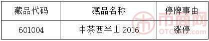 - 2017年3月21日\u00A0\u00A0\u00A0\u00A0本中心下列藏品于2017年3月16日、2017年3月17日、2017年3月18日已连续三个交易日价格涨停:\u00A0\u00A0\u00A0\u00A0根据江苏大圆银泰商品合约交易市场风险控制管理办法等规定,属于藏品价格异常波动。\u00A0\u00A0\u00A0\u00A0经本中心研究决定,自2017年3月20日9时30分起暂停以上藏品交易,于...