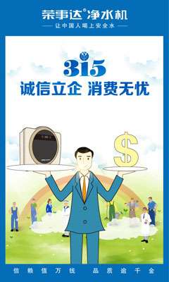 - 2017年3月20日\u00A0\u00A0\u00A0\u00A0慧聪净水网一年一度的3?15消费者维权日如期而至,今年的主题提倡“消费无忧”,相比往年的“新消费我做主”、“携手共治畅享消费”等,消费者与产品依然是不变的核心,这要求各企业积极倡导以大众为主导的消费理念,实现“产品质量无忧”、“消费者选择无忧”,共同营造良好的消费环境。而作为十余年专注净水领域发展的荣事达水工业公司,亦坚持从我做起,用好产品与消费者对...