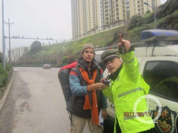 - 2017年3月19日3月15号下午3点过,重庆交巡警总队城市快速道路支队二大队巡逻民警接到指令:“华陶立交上道至巴南立交有一外国男子在公路边行走,十分危险!”接警后,民警立刻赶往事发路段寻找,最终在巴南立交处发现了一名正在行走的外国男子。经过简单交流,民警了解到,外国男子名叫赫尔南,哥伦比亚人。他正在实现他的环球之旅梦想,中国是他旅行的第11个国家。已经去了第一站昆明,现在正准备去下一站张家界,希望能搭便车过去。由于...