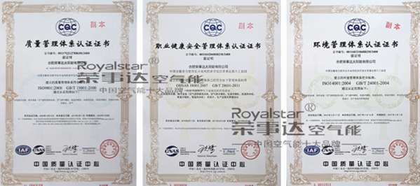 - 2017年2月27日近日,经过中国质量认证中心工作组专家的层层审核,荣事达太阳能有限公司成功通过了国家三标一体认证,即ISO9001质量管理体系、ISO14001环境管理体系和OHSAS18001职业健康安全管理体系三标一体认证。此次荣事达扩建自动化生产线成功获得三标一体认证,是我公司继获得CAQI、CVC、3C、CE以及外观设计、实用新型专利等国内外数十项荣誉认证之后的又一殊荣。ISO9001、ISO14001和O...